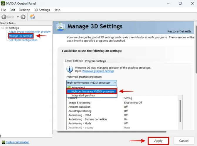 - Path: Right-click Desktop > NVIDIA Control Panel > Manage 3D Settings.